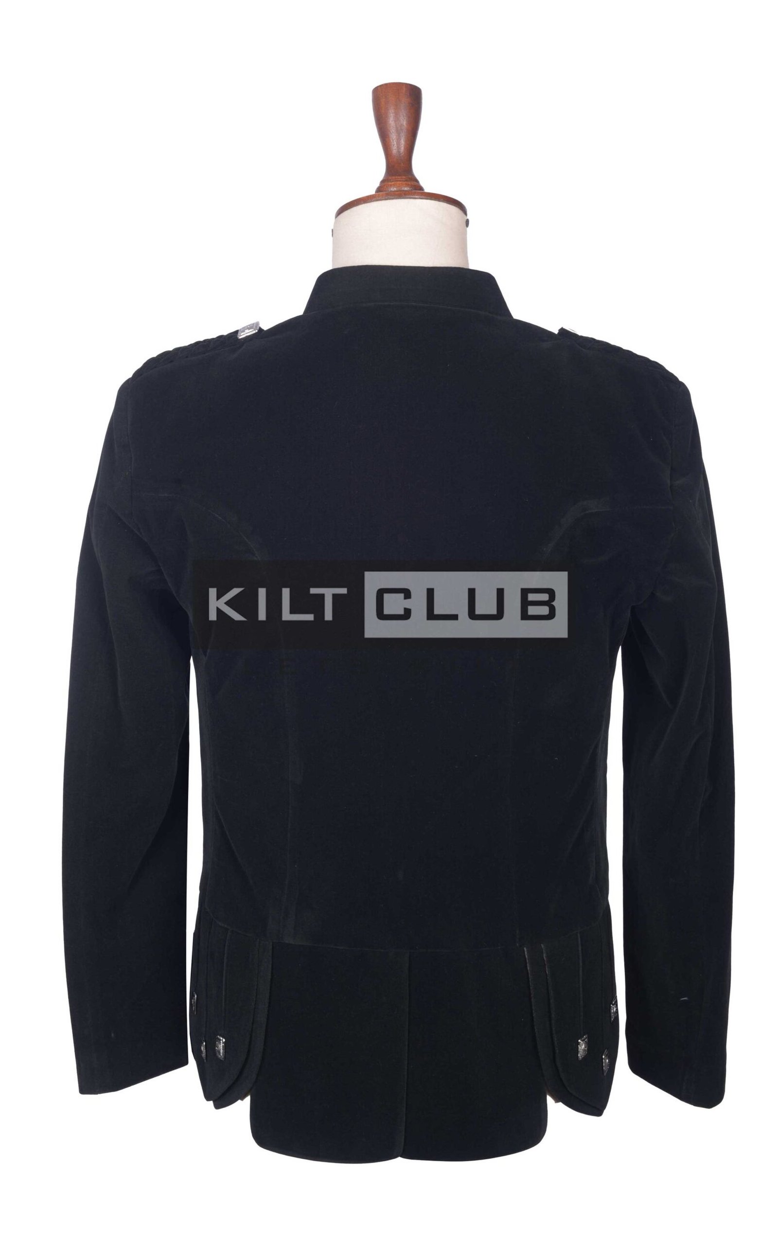 Make a grand entrance in the Black Velvet Kenmore Doublet Jacket, a classic symbol of Highland formalwear. Rooted in Scottish tradition and tailored for modern occasions, this jacket brings a regal flair to your kilt outfit.