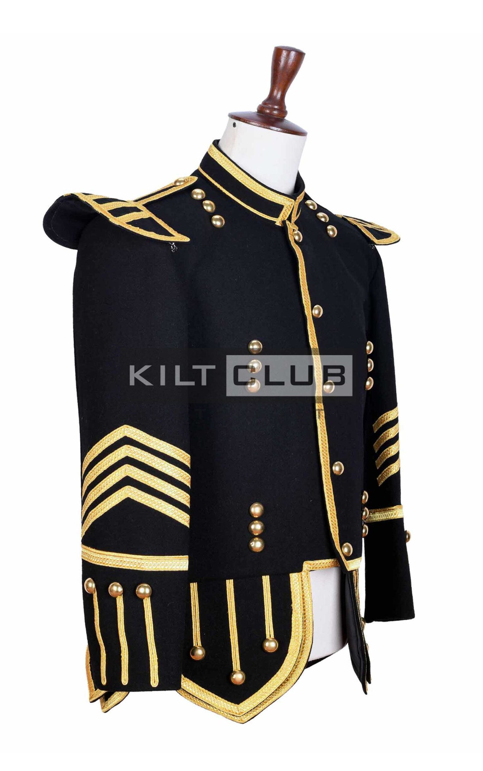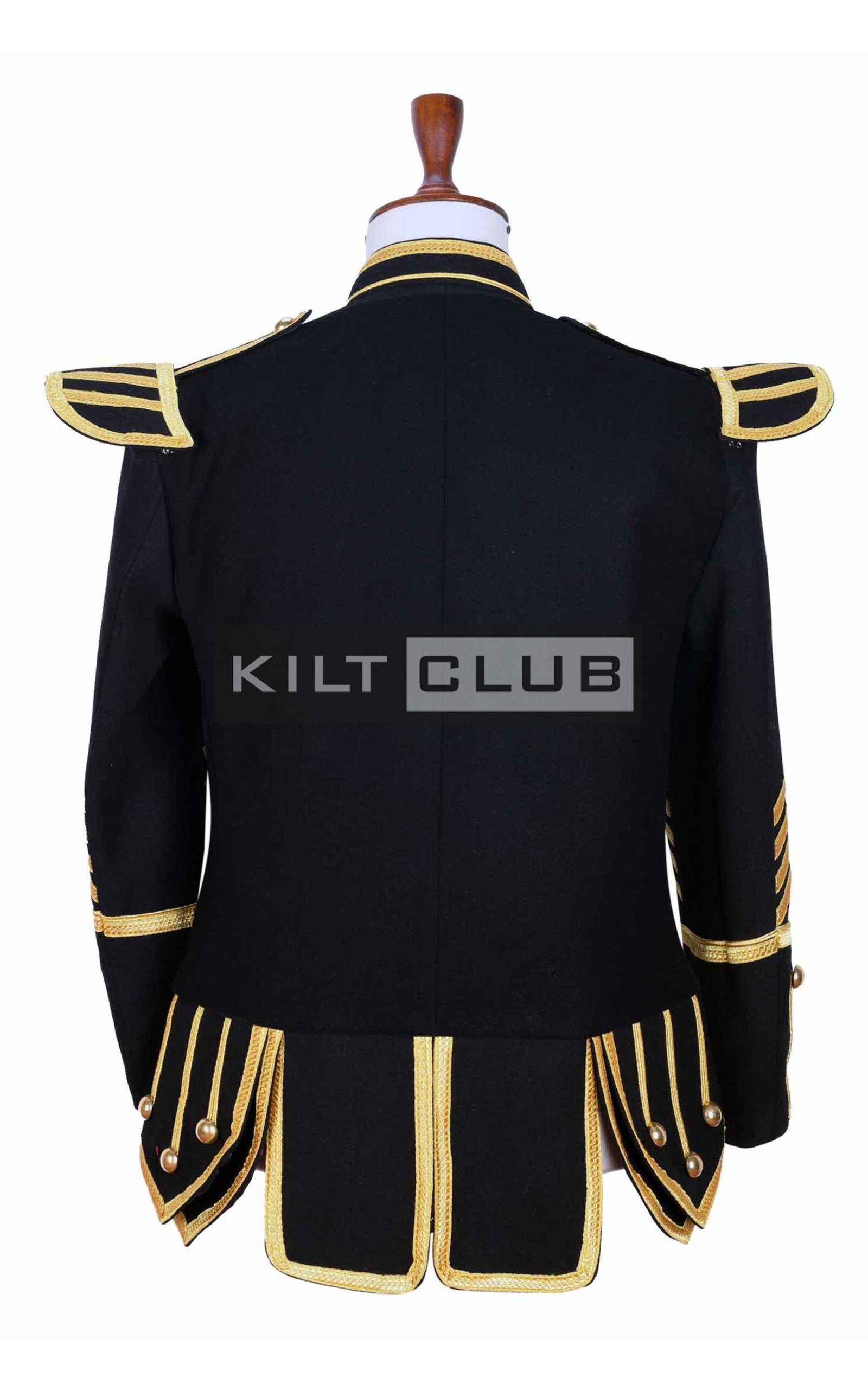 Wear the Black Wool Gold Braided Scottish Military Bagpiper jacket to channel strength, heritage, and style. Its timeless design and superior craftsmanship make it more than just clothing—it becomes a symbol of presence and pride. Elevate your wardrobe with this iconic jacket and stand out wherever tradition meets bold fashion.