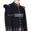 We craft this doublet from high-quality black wool, ensuring warmth, structure, and long-lasting wear. The tailored cut provides a sharp, commanding fit that enhances your presence at parades, weddings, or formal events. With a structured silhouette, high collar, and traditional design, this jacket upholds the honor of ceremonial Highland attire.
