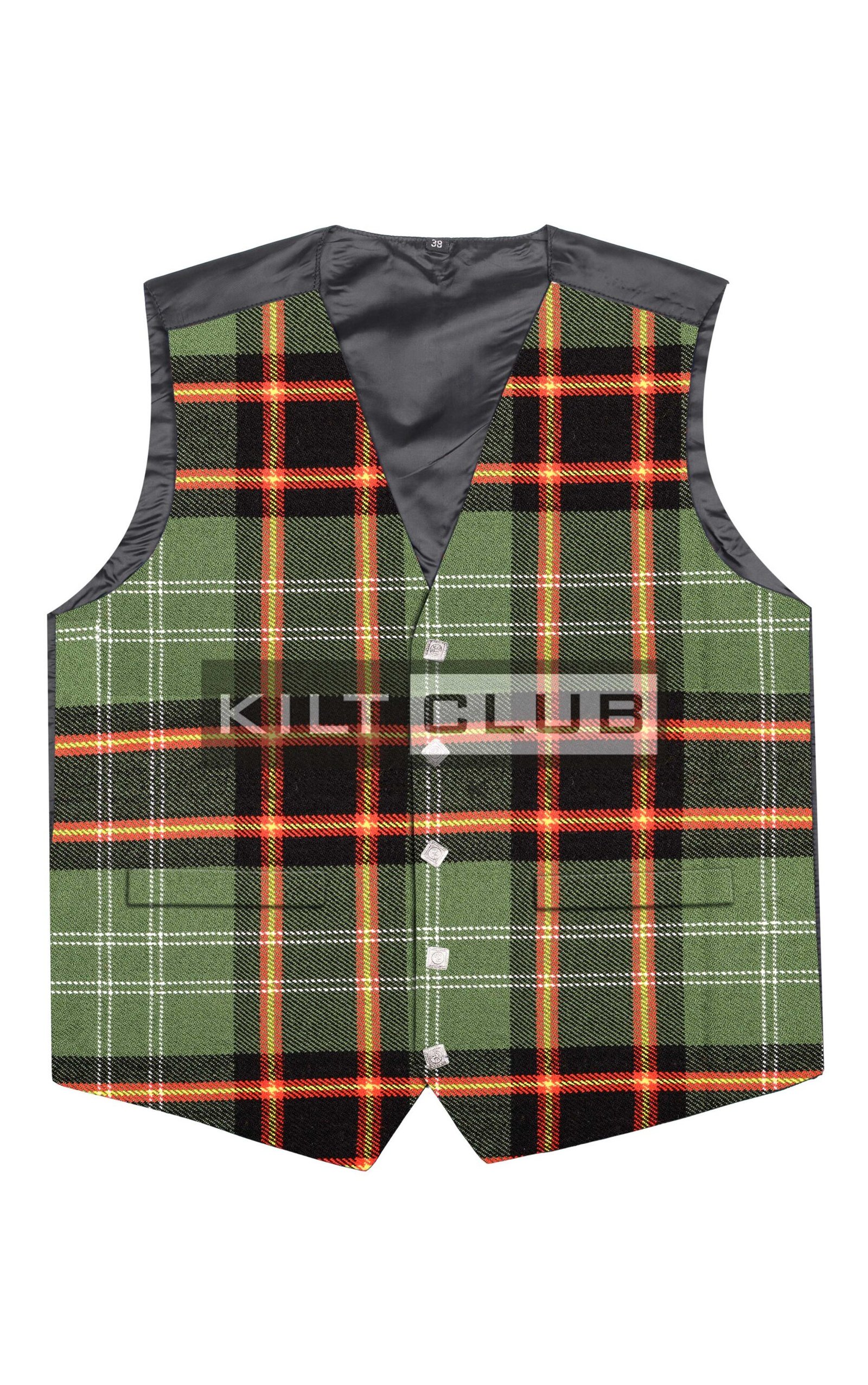 Fully lined for comfort, this vest is designed to feel as good as it looks. It includes two functional front pockets for added practicality and an adjustable back strap to help you achieve the perfect fit. Whether worn with a matching jacket and kilt or paired with smart trousers, the Buchanan Hunting Tartan Vest completes any Highland or dress ensemble with distinction.