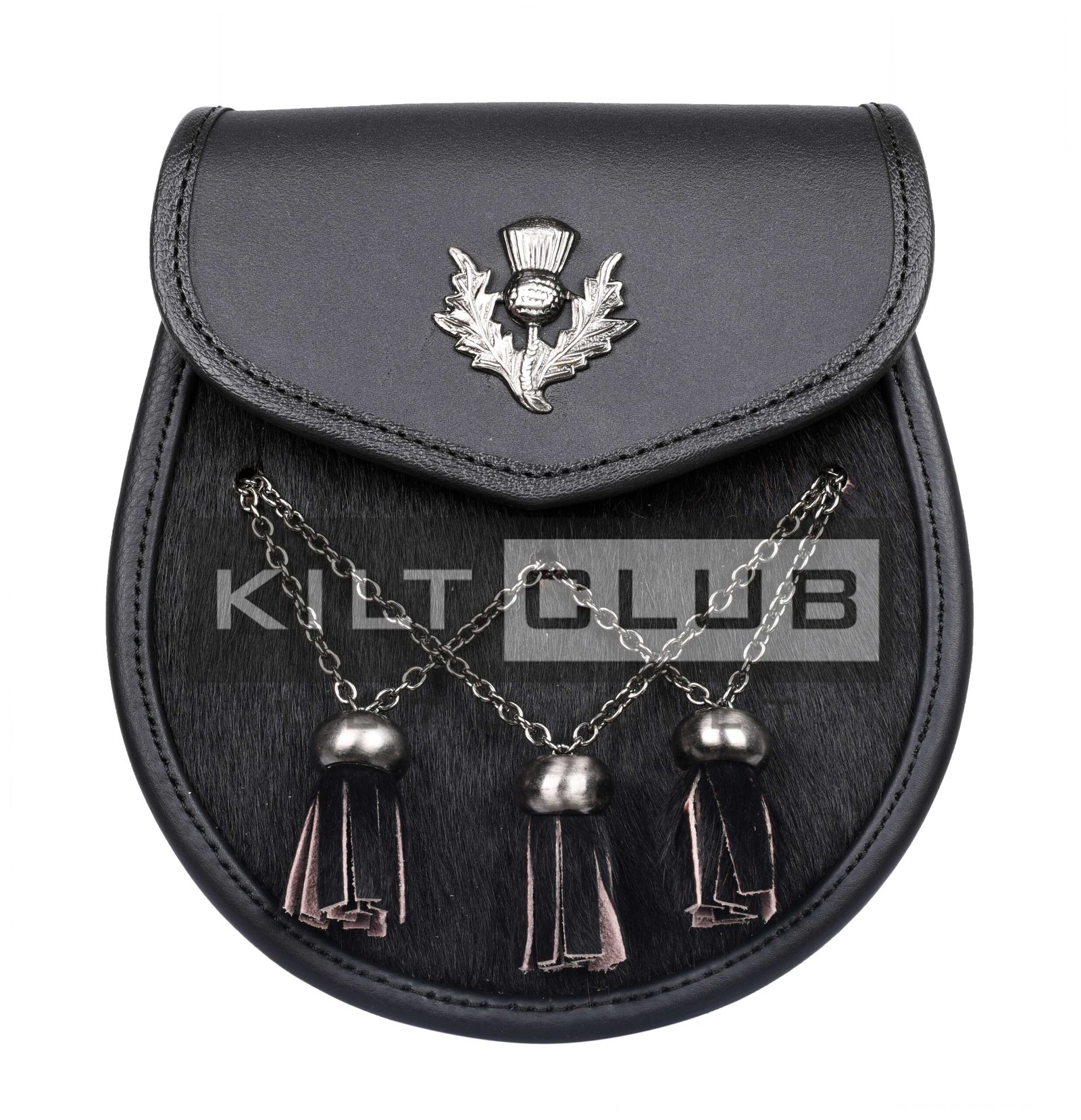 Designed for comfort and convenience, the sporran includes an adjustable chain strap and leather belt loops that provide a secure and comfortable fit around the waist. The durable hardware resists wear and corrosion, ensuring long-lasting performance even with regular use. Reinforced stitching enhances strength and durability, making this sporran a reliable accessory for years to come.