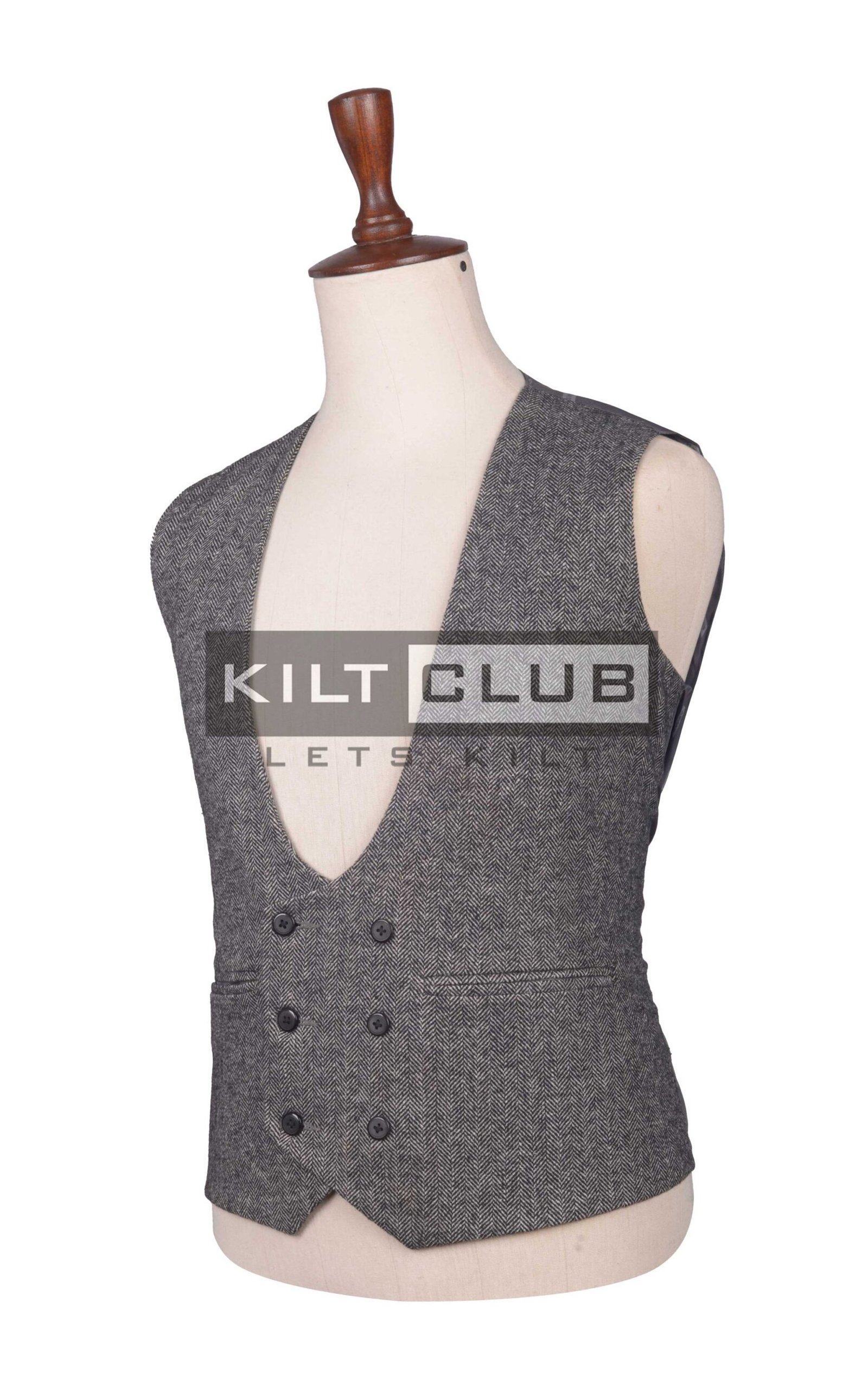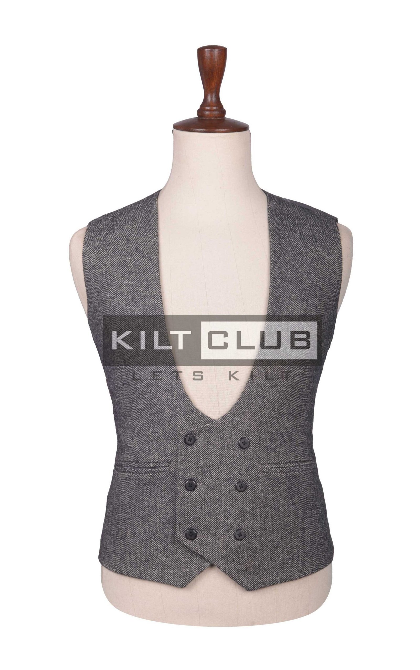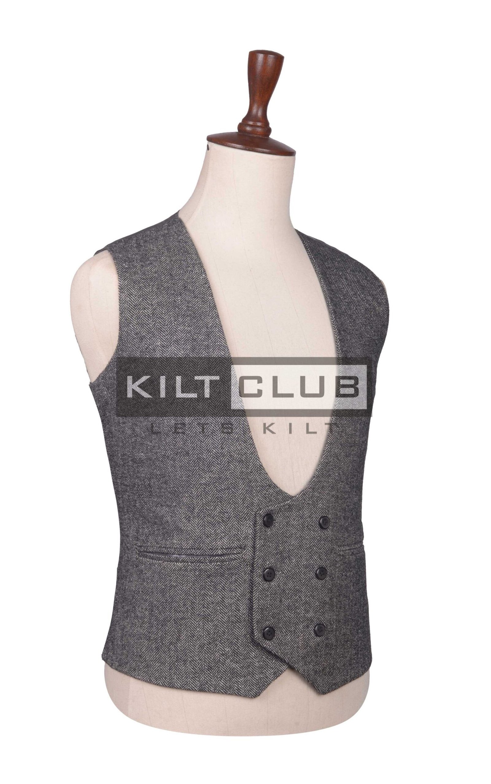 The waistcoat boasts a tailored fit that flatters your silhouette without restricting movement. It fastens with six carefully crafted buttons, arranged in a stylish double-breasted formation. The deep V-neck allows for easy layering over shirts or under jackets, making it a versatile addition to your collection.
