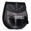 Crafted from premium black leather, this sporran features luxurious gray-black rabbit fur on the front, offering a soft, sleek texture that enhances its visual appeal. The natural color variations in the fur create a distinctive and eye-catching design that complements the smooth leather body. The polished chrome fittings and matching tassels add a refined touch, making this sporran a standout piece for weddings, ceilidhs, Highland Games, and other formal events.
