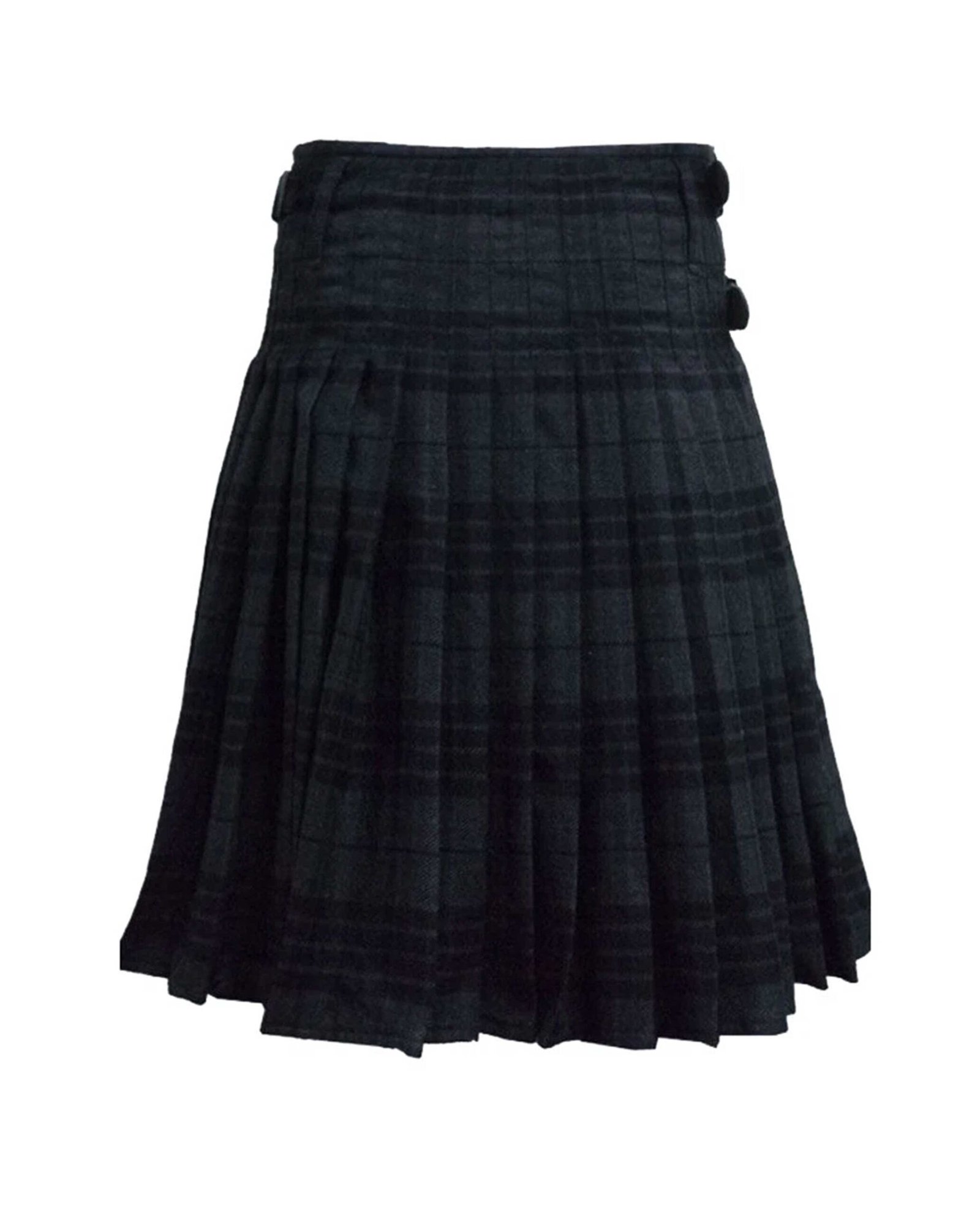 The full 8-yard construction gives the kilt a generous swing and graceful drape. A flat front maintains a clean, tailored appearance, while the knife pleats at the back add depth, movement, and classic structure. Two adjustable leather straps with rust-free buckles ensure a secure, personalized fit. Reinforced stitching throughout the garment enhances durability.