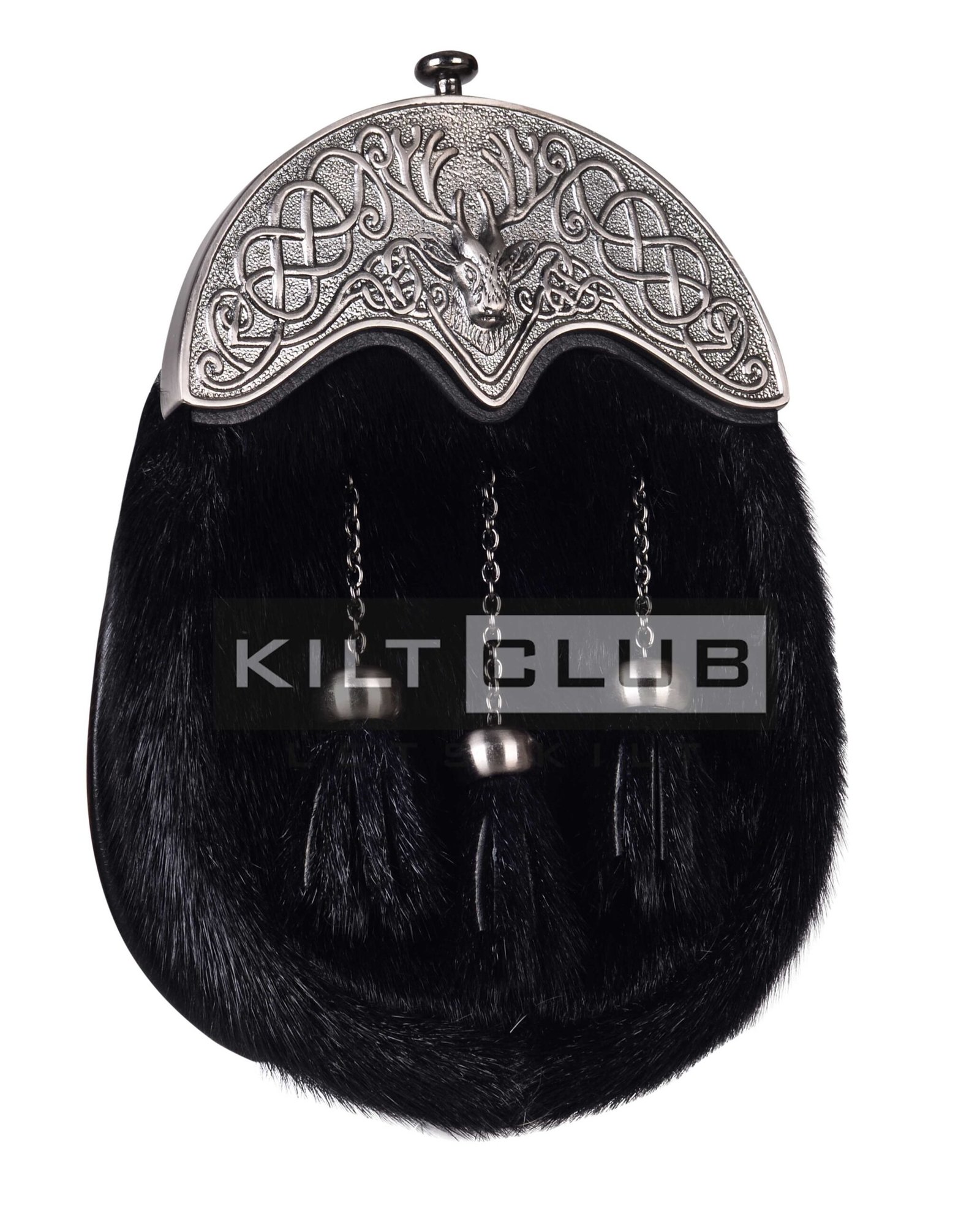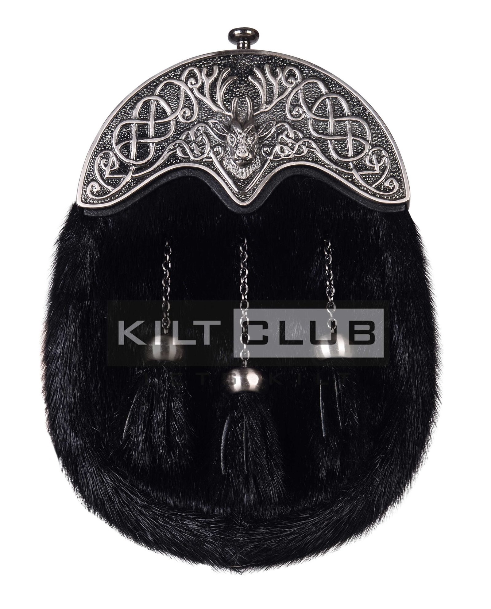 Nickle Brushed Stag Head Black Seal Fur Full Dress Sporran