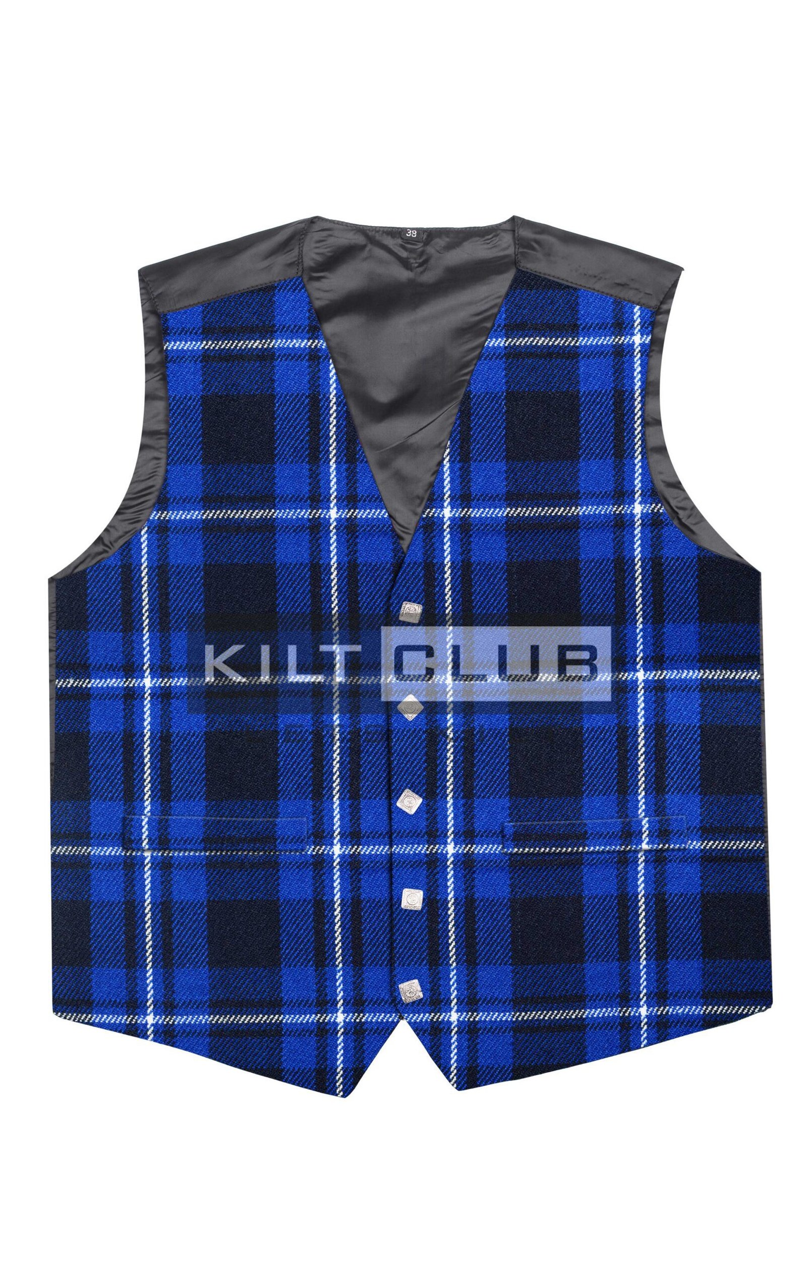 The classic Argyll cut includes a five-button front, elegant satin back, and adjustable rear strap to ensure a snug, tailored fit. The notched lapels and subtle front pockets add to the timeless silhouette, while the tartan pattern guarantees that your outfit will stand out in the best way.