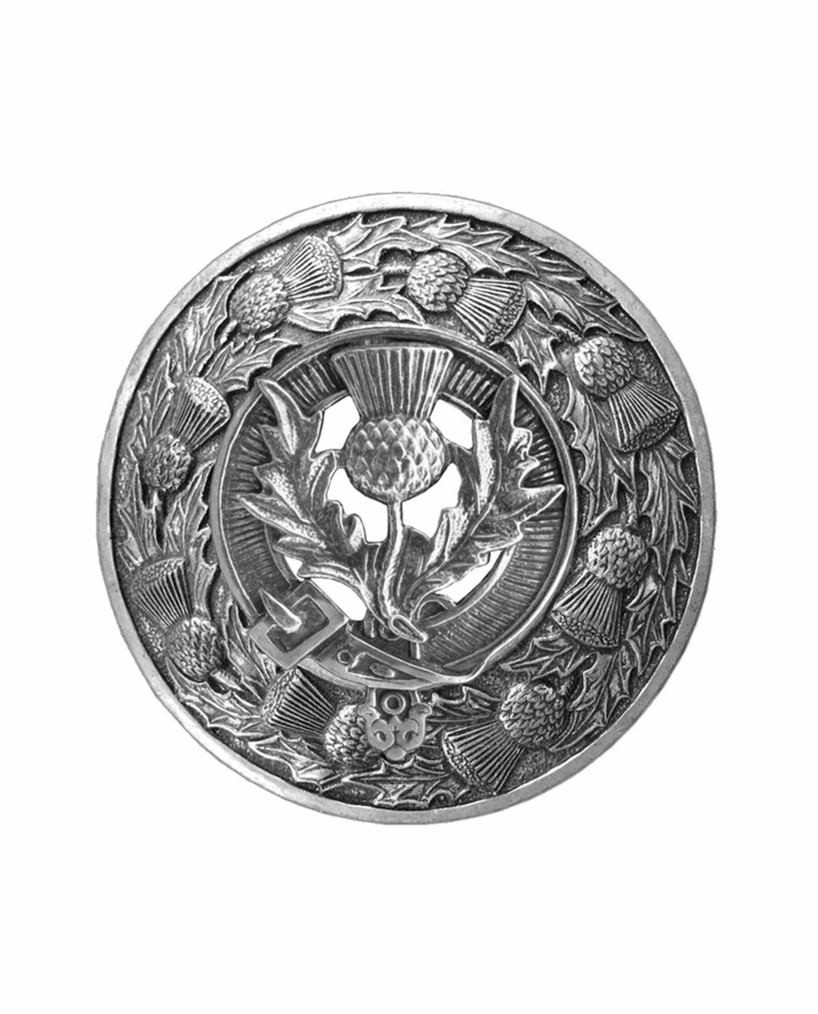 The thistle, a symbol of resilience and protection, is meticulously crafted in antique finish, adding a vintage charm that enhances its historical significance. Behind it, the plaid pattern reflects Scotland’s rich tartan tradition, representing family, clan, and community bonds that have endured for centuries.