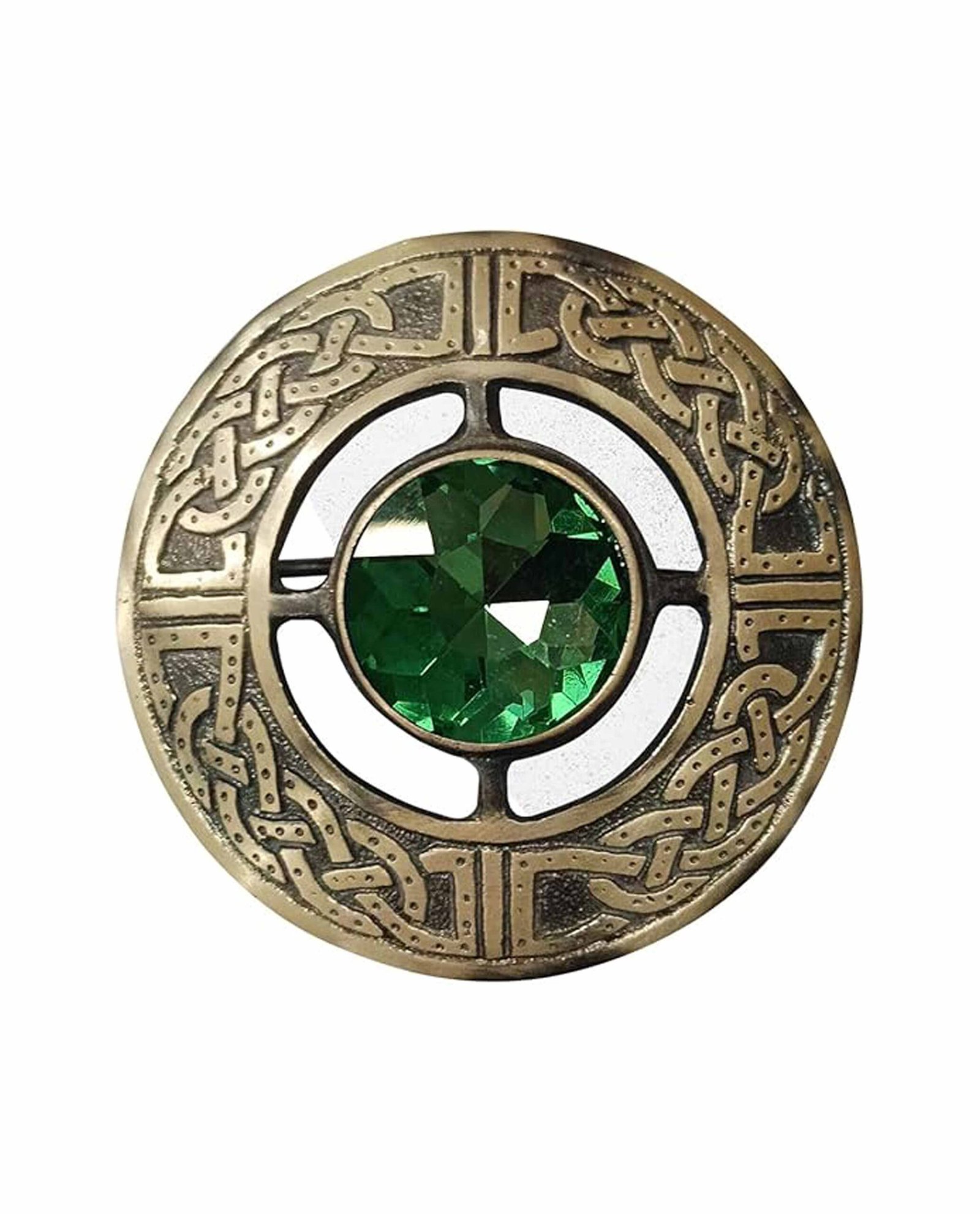 Set in an antique brass frame, the light green accent beautifully contrasts with the warm, aged finish, giving the brooch a vintage charm that pairs well with both traditional and modern styles. Intricate Celtic knotwork surrounds the centerpiece, reflecting unity, eternity, and the rich cultural heritage of Scotland.