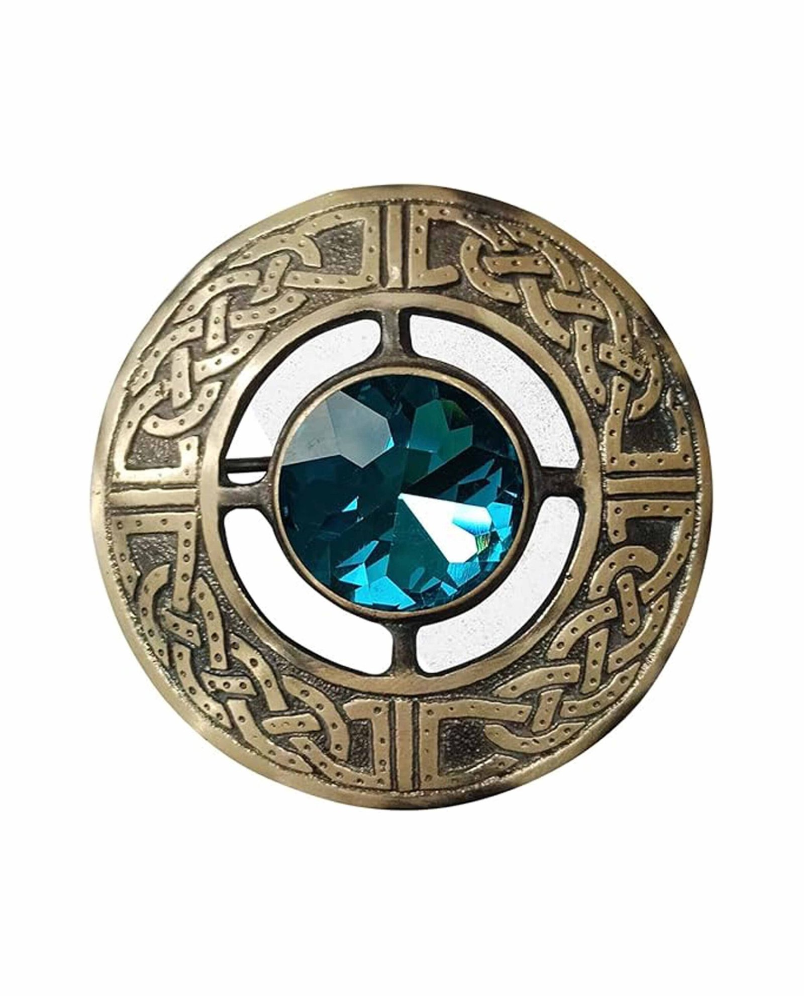 At its heart, the brooch features a delicate sky-blue faux gemstone, reminiscent of clear Highland skies and fresh coastal air. Its subtle brilliance stands out against the antique brass setting, giving the brooch a warm, vintage feel that suits both classic and contemporary styles.