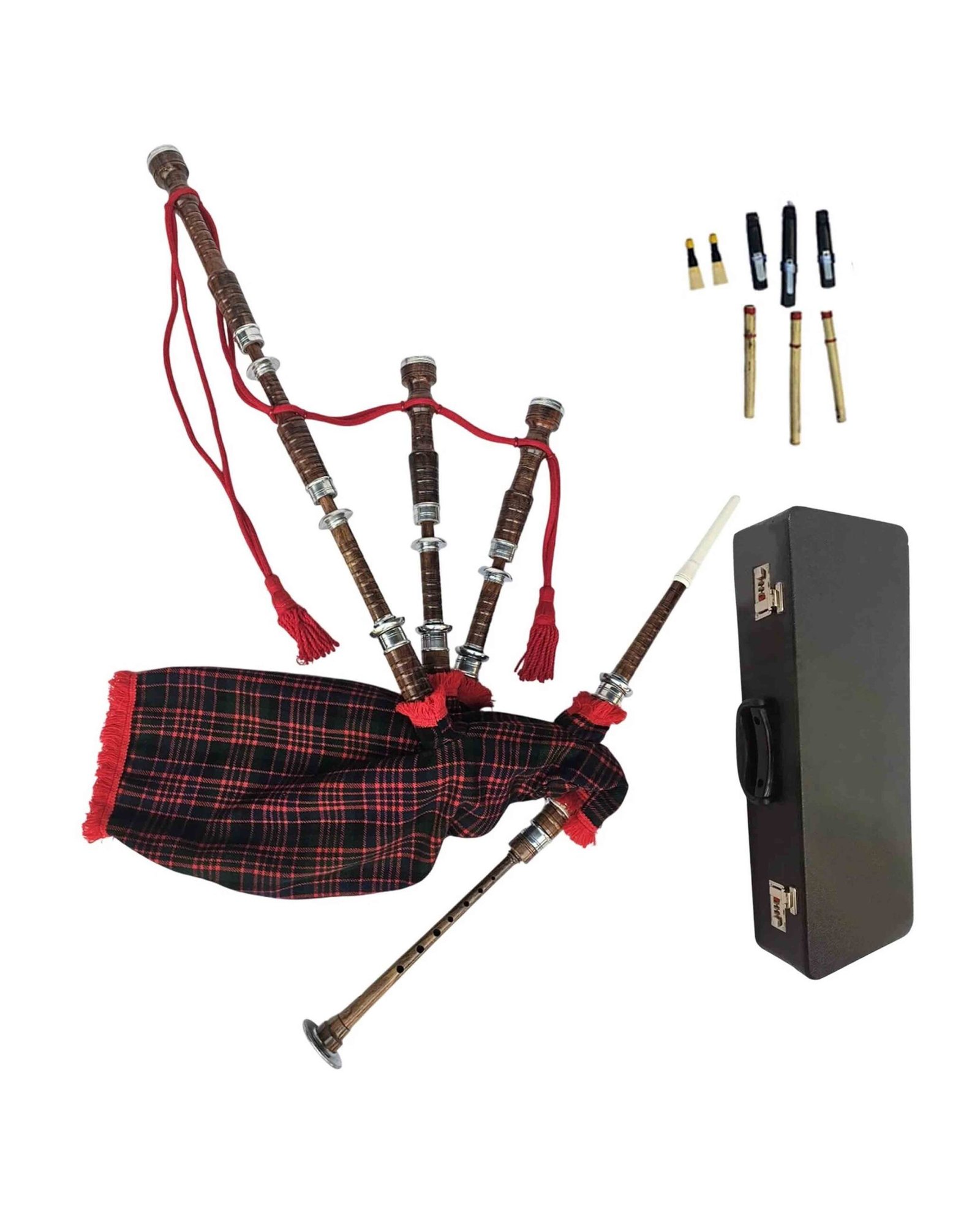 This full set includes three drones (two tenors and one bass), a precision-engineered chanter, a blowpipe with a built-in non-return valve, and a synthetic bag that ensures airtight performance. The synthetic bag is designed to maintain consistent airflow and pressure, allowing you to focus on playing without worry.