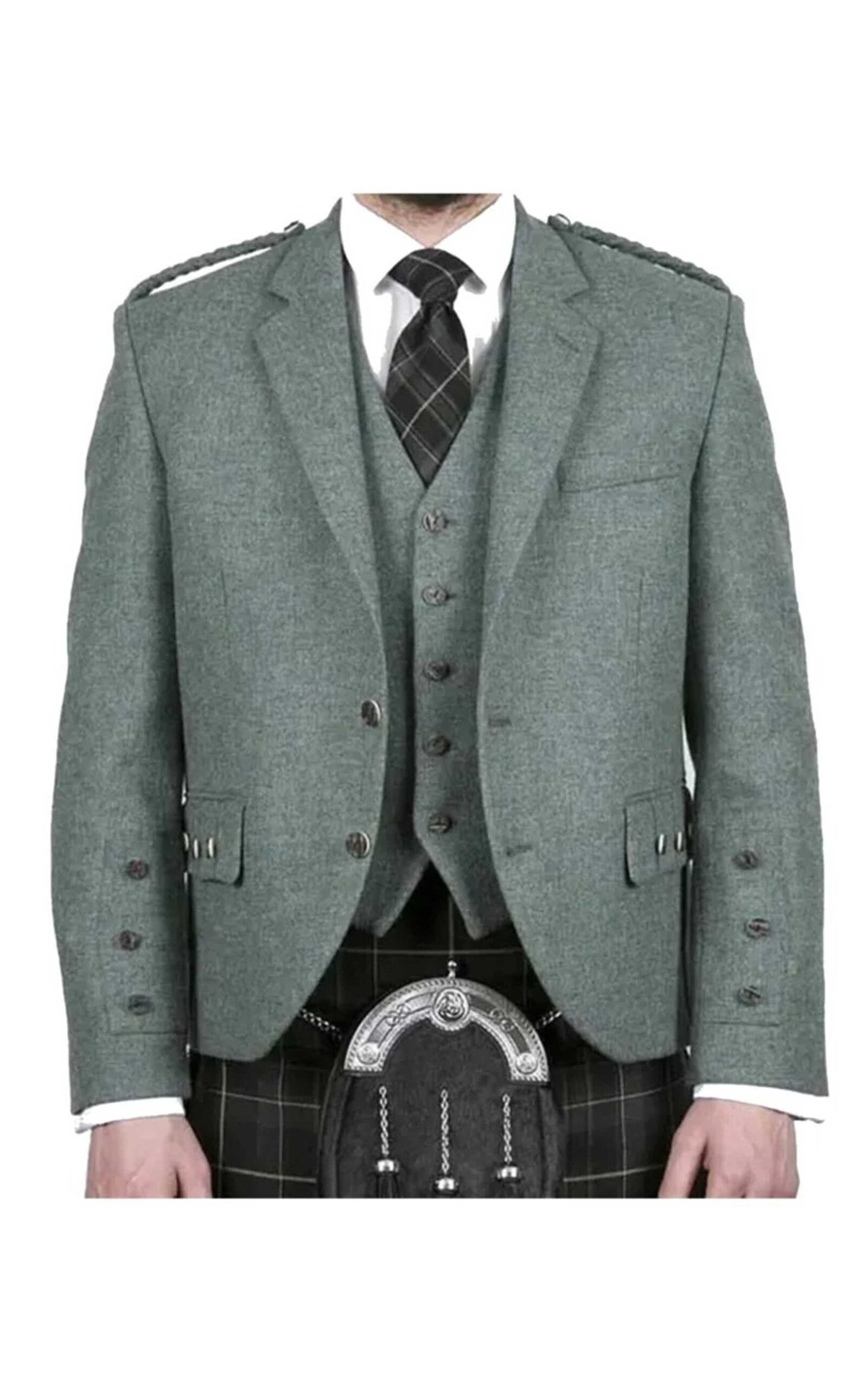 Crafted from premium wool-blend fabric, the jacket offers both durability and comfort. The distinctive Lovat green hue adds a soft, earthy tone that complements a wide range of tartans. Whether worn with a kilt, trews, or tailored trousers, it creates a distinguished silhouette that commands attention without overpowering your outfit.