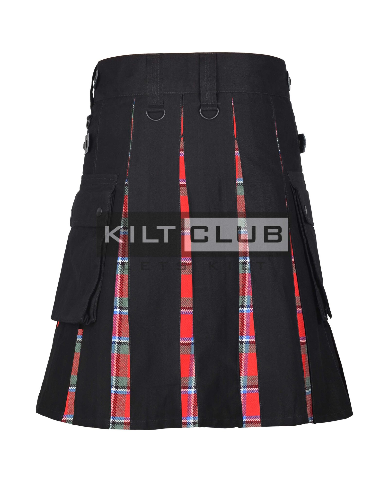 The Velcro closure makes it easy to wear, while adjustable leather straps and chrome buckles provide a custom, secure fit. Two large cargo-style pockets on each side deliver convenience without compromising the kilt’s sleek look—perfect for holding your phone, keys, or wallet.