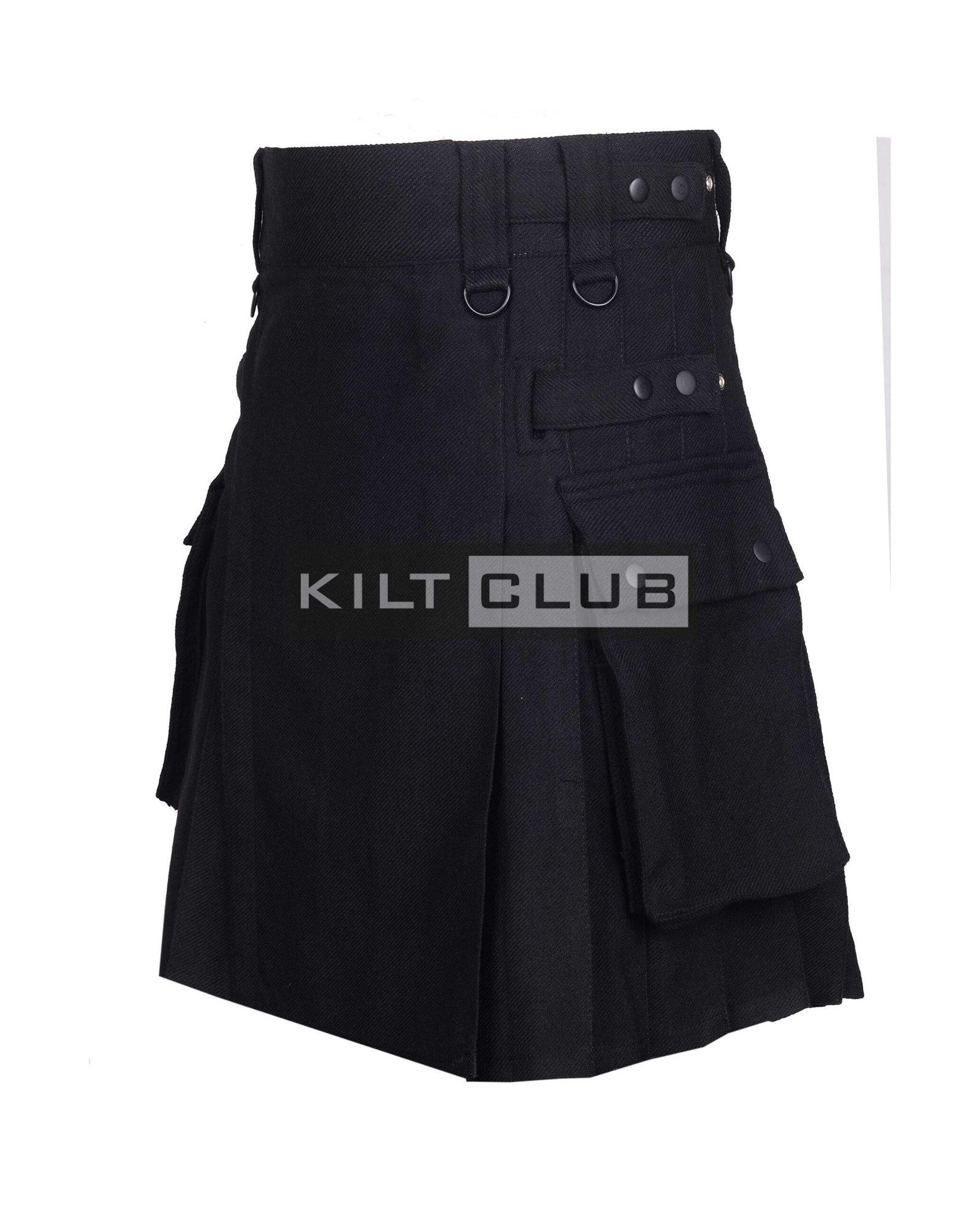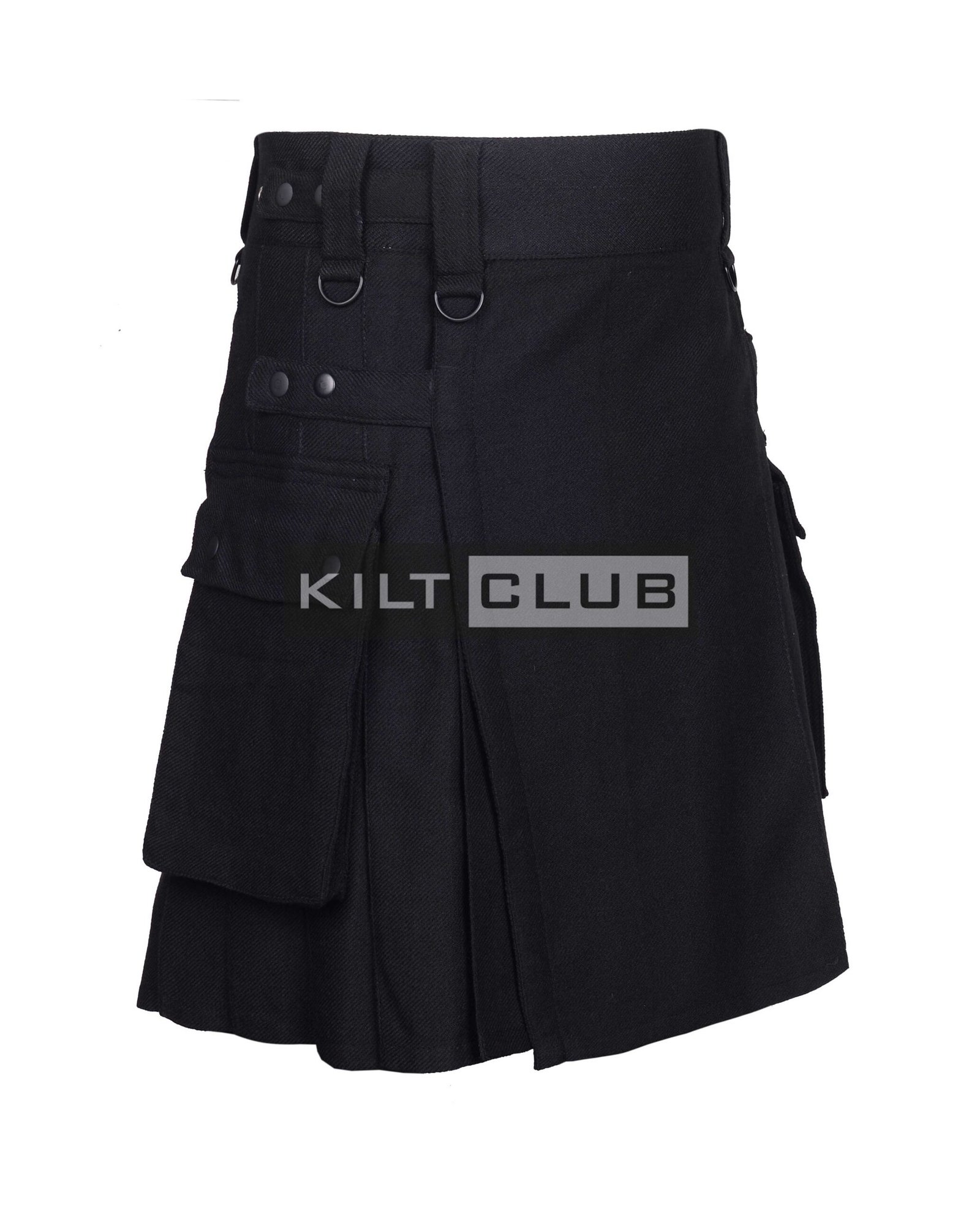 Solid Black Wool Utility Kilt