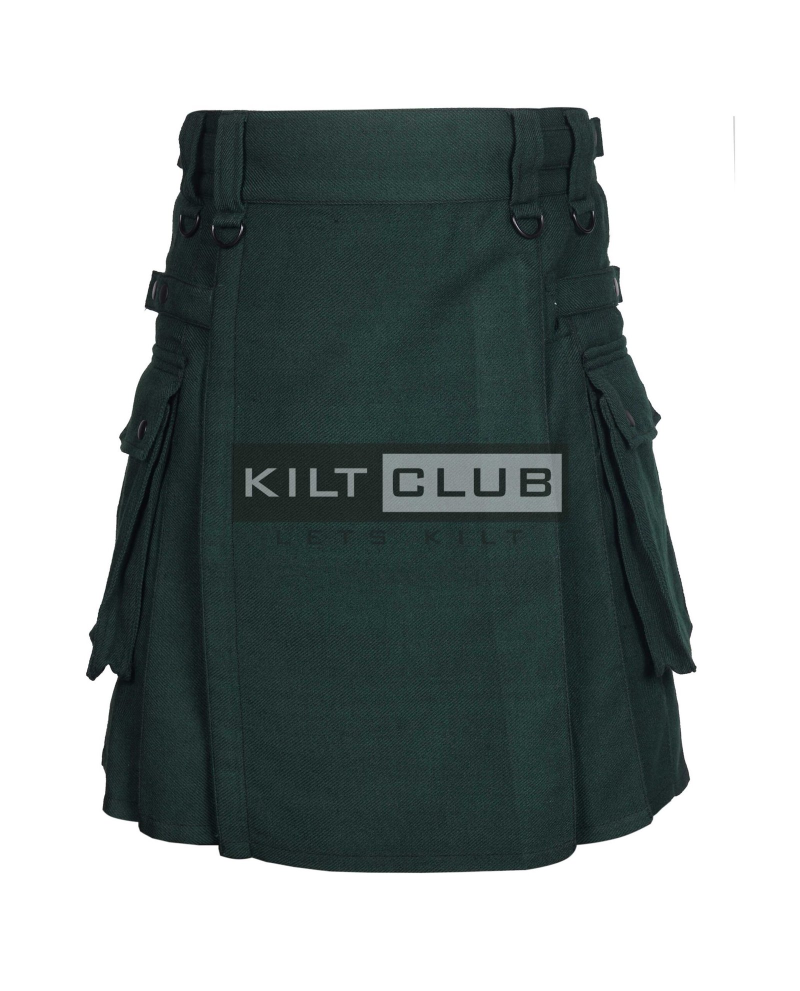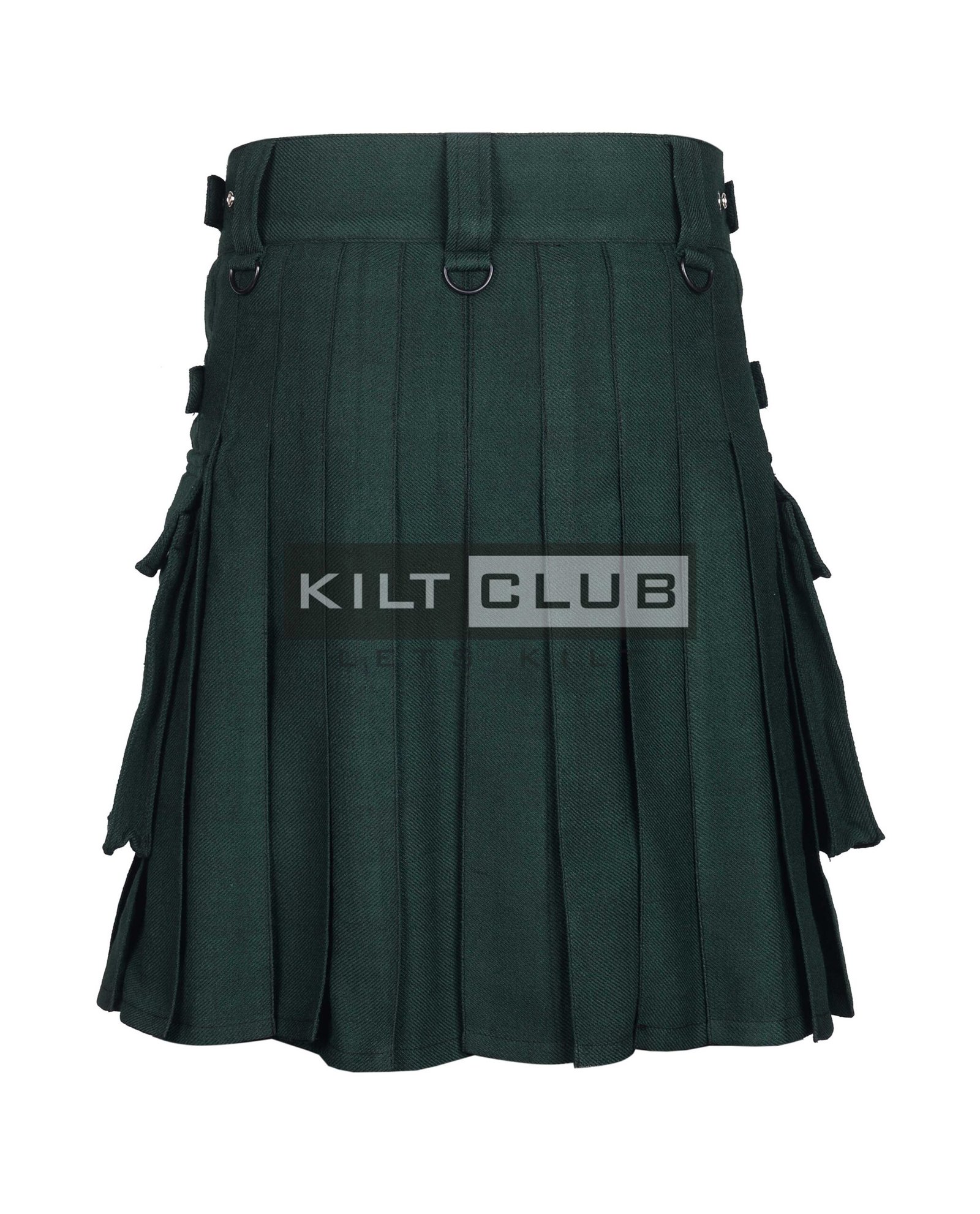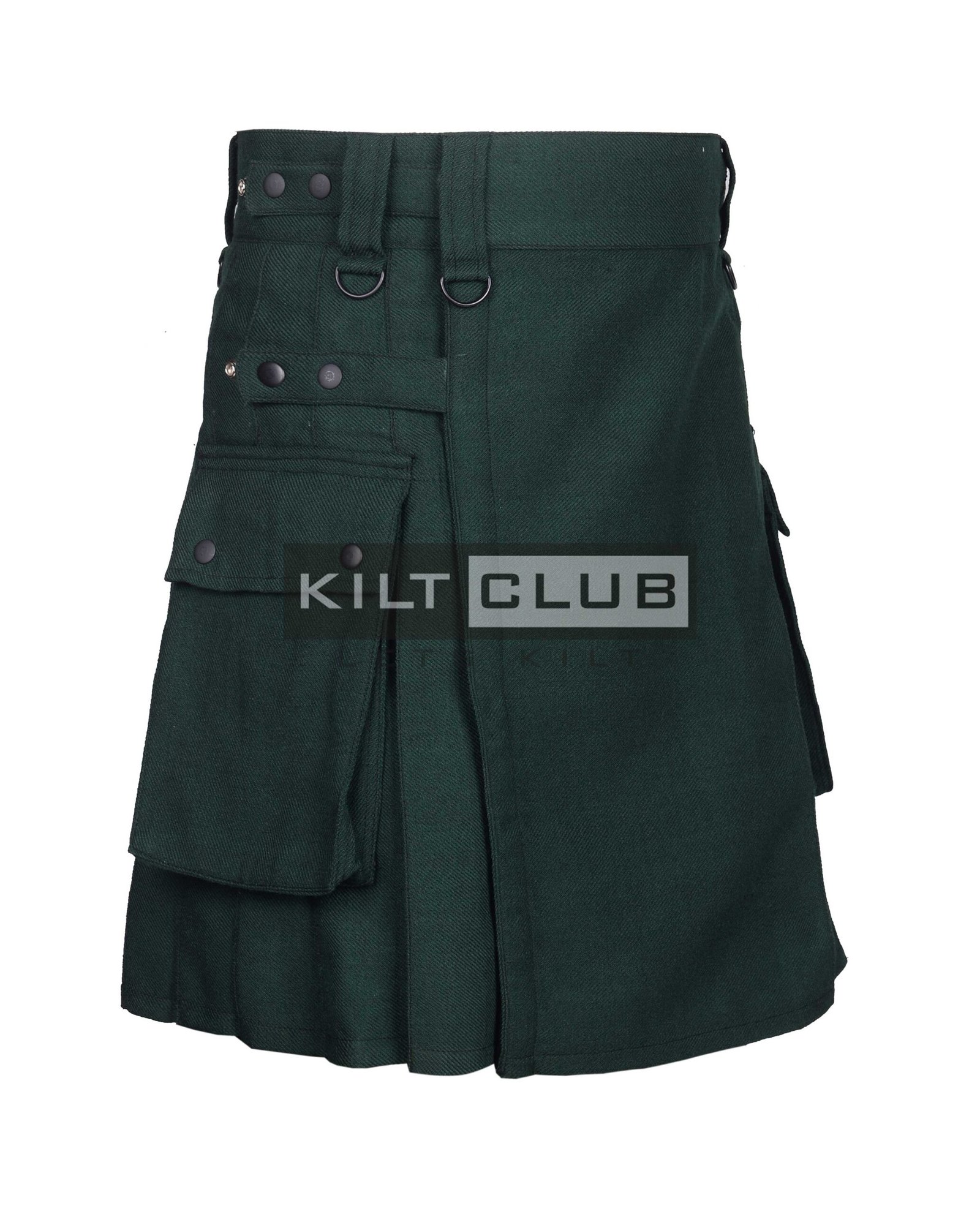 The Solid Green Wool Utility Kilt combines bold style with practical functionality, offering a modern take on traditional Scottish wear.