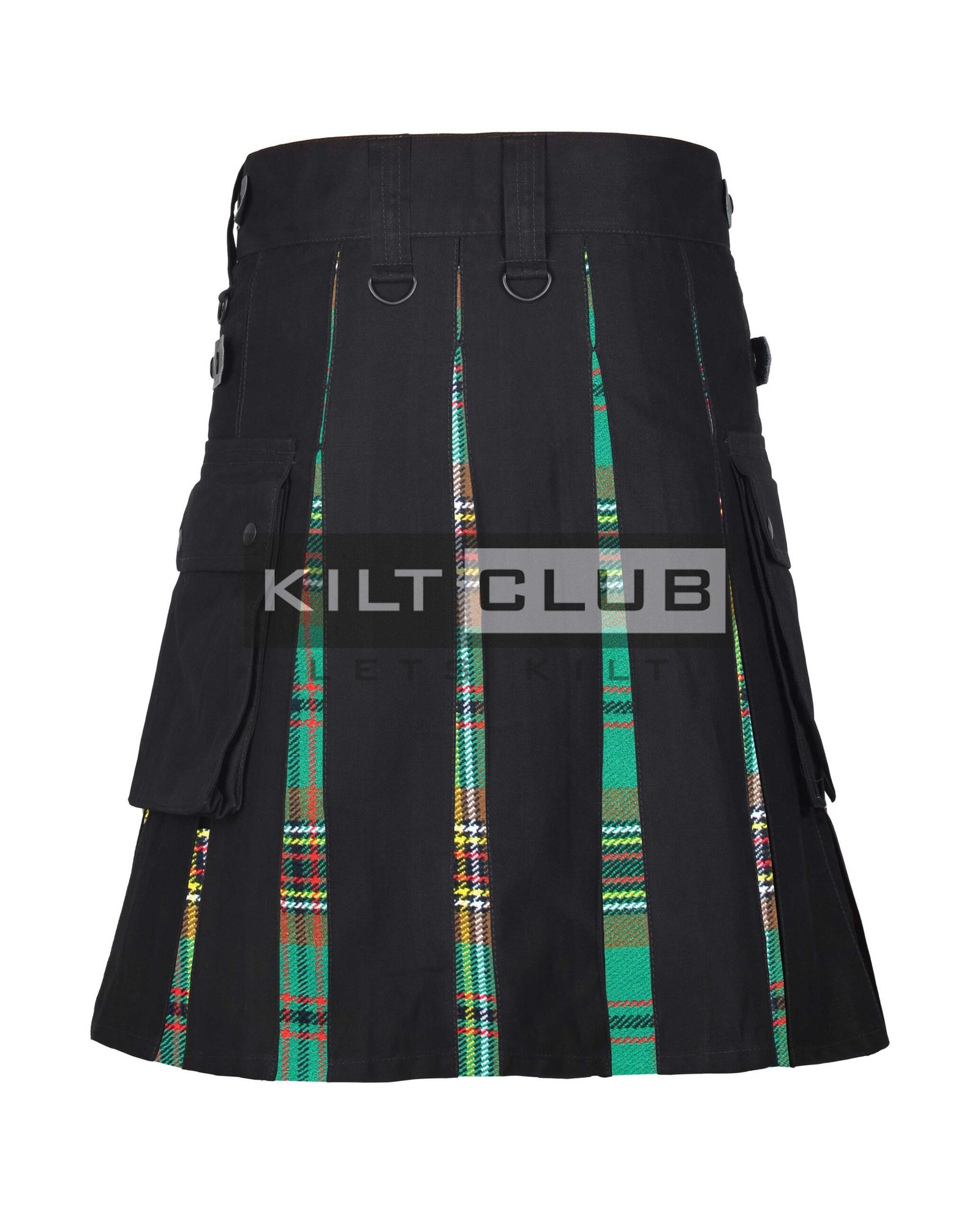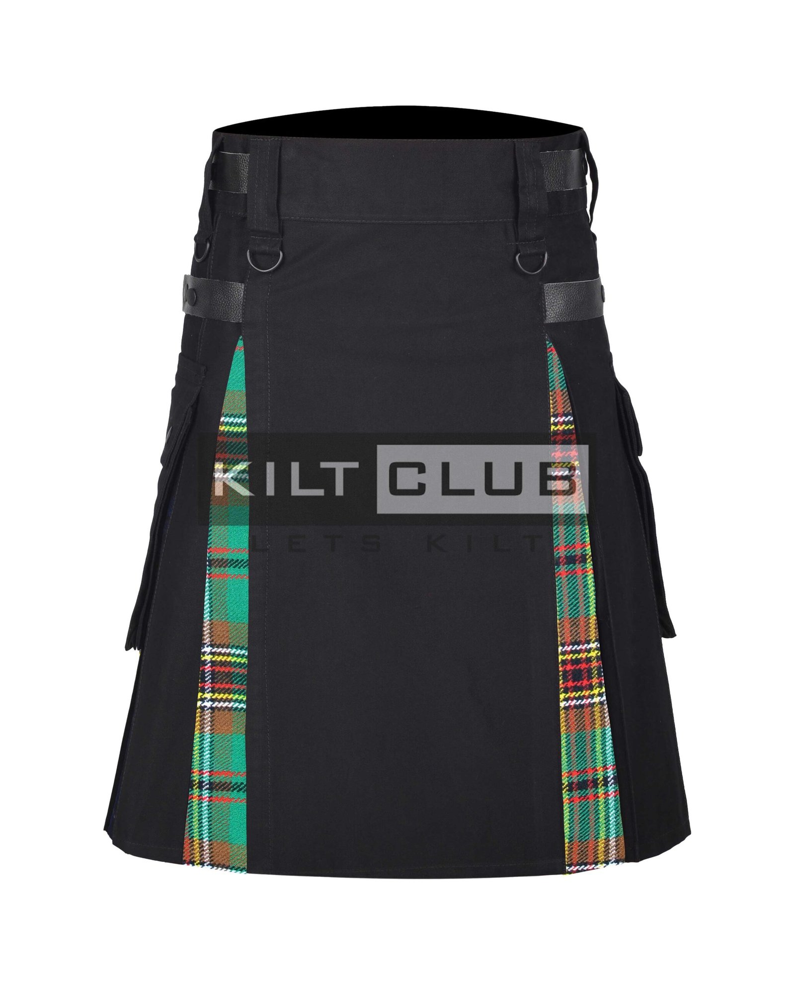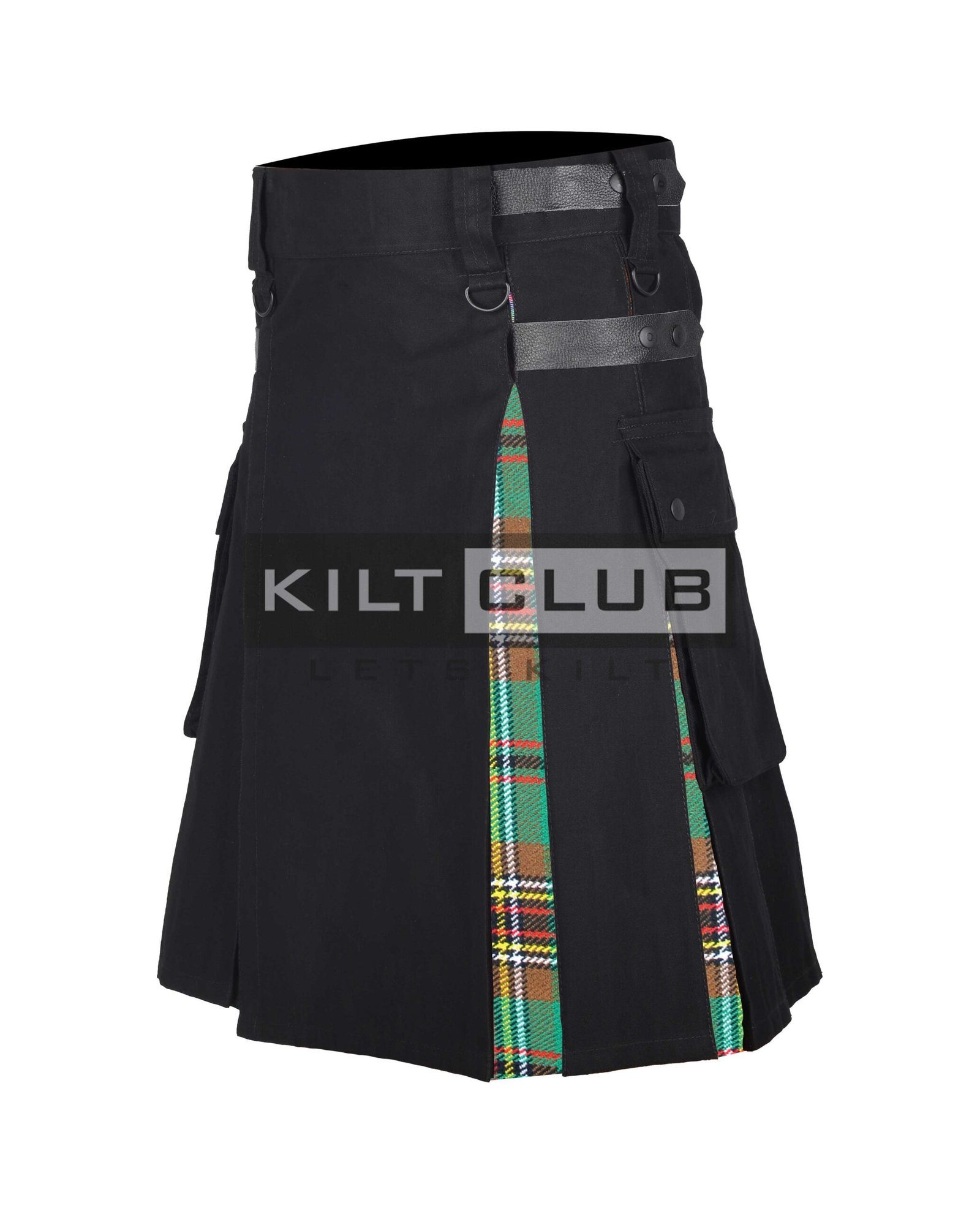 Functionality is a priority in this design. The kilt fastens securely with Velcro, leather straps, and chrome buckles, allowing for a fully adjustable fit. The addition of dual side cargo pockets gives you a place to carry your phone, wallet, or keys—perfect for festivals, travel, or daily outings.