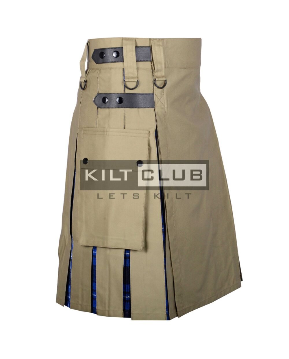 Khaki Cotton Ramsay Blue Tartan Hybrid Kilt