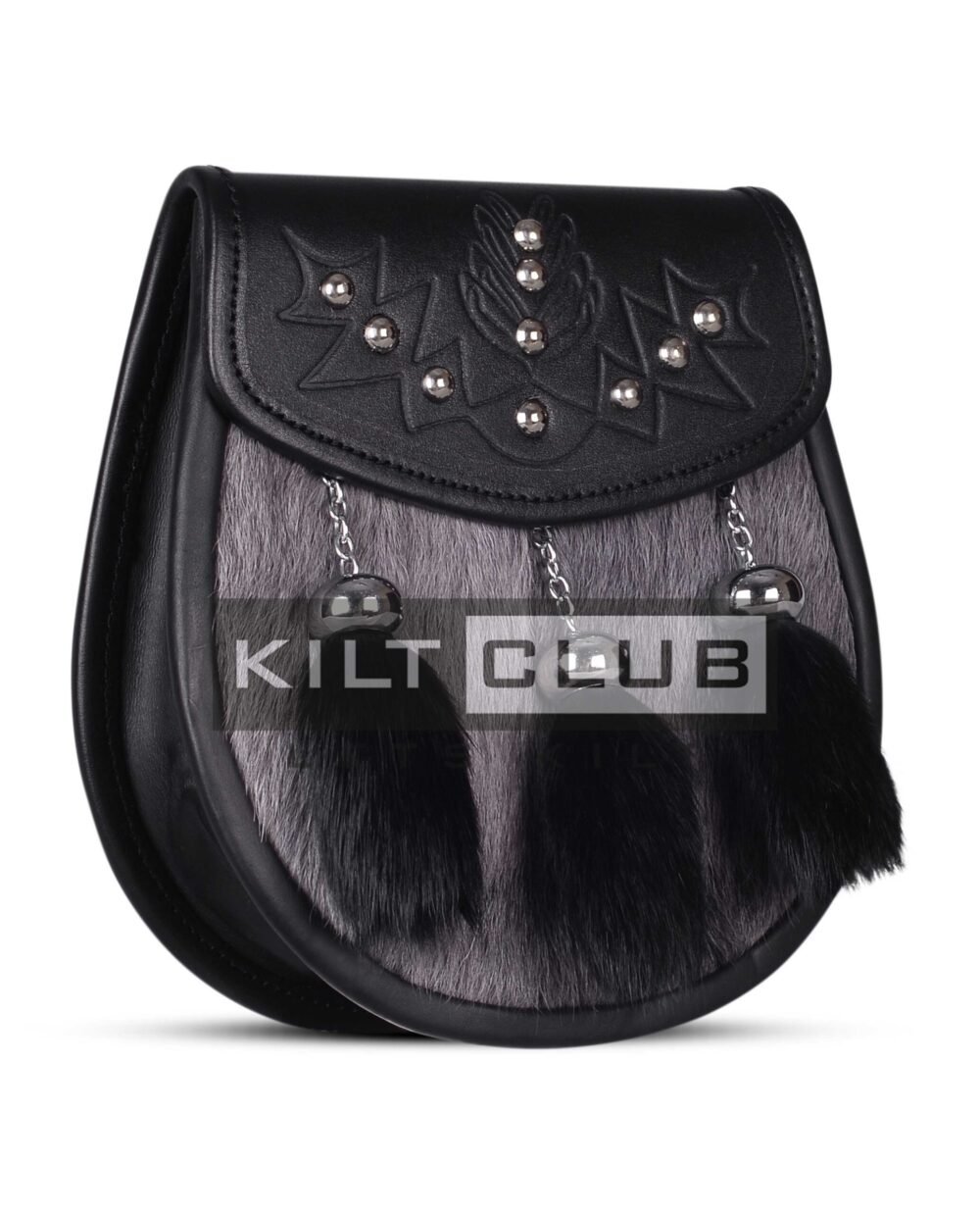 Original price was: $75.00.$50.00Current price is: $50.00.Gray Black Rabbit Fur Semi Dress Sporran